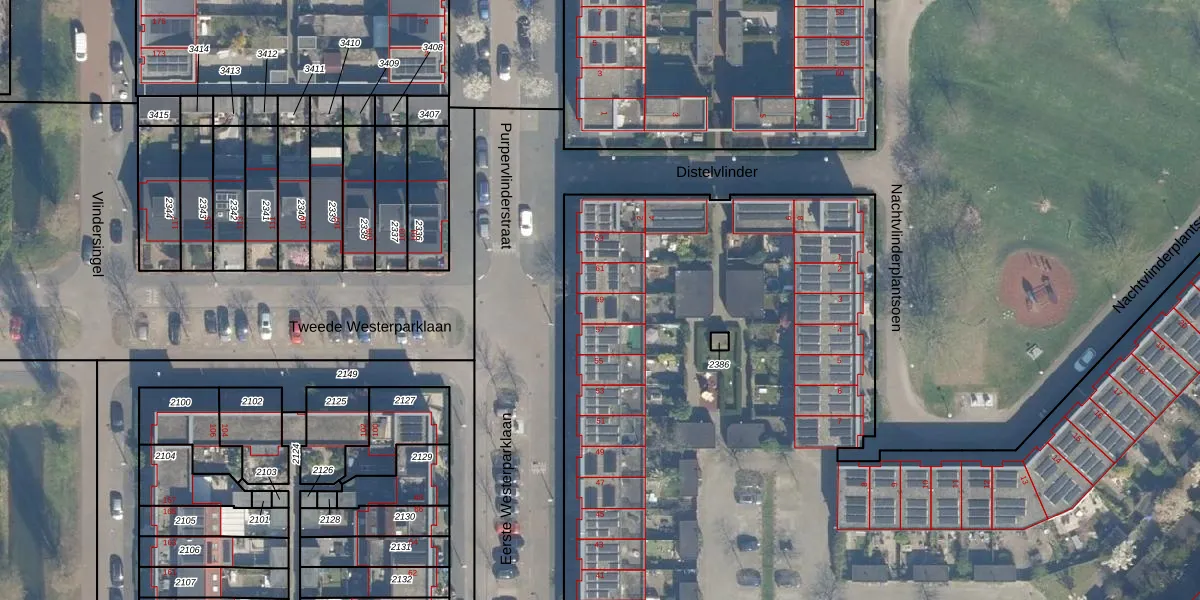 Het perceel waarop Eerste Westerparklaan 59 staat heeft een oppervlakte van 1,3 ha. Dit is een zeer groot perceel. De perceeloppervlakte wordt geregistreerd door het Kadaster. Gedetailleerde informatie over de maten van dit perceel kunt u vinden in het rapport Kadastrale kaart met maatvoering van Eerste Westerparklaan 59.