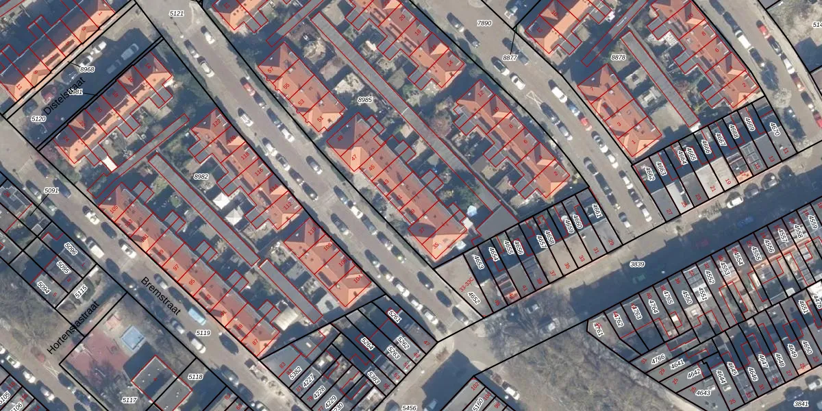 Het perceel waarop Egelantierstraat 39 staat heeft een oppervlakte van 3752 m². Dit is een zeer groot perceel. De perceeloppervlakte wordt geregistreerd door het Kadaster. Gedetailleerde informatie over de maten van dit perceel kunt u vinden in het rapport Kadastrale kaart met maatvoering van Egelantierstraat 39.