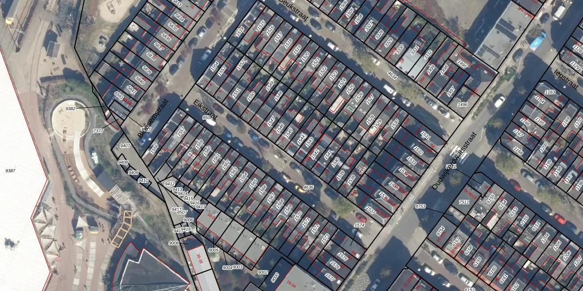 Gebruik de zoekbalk of klik op een perceel voor informatie over de adressen binnen dit perceel.