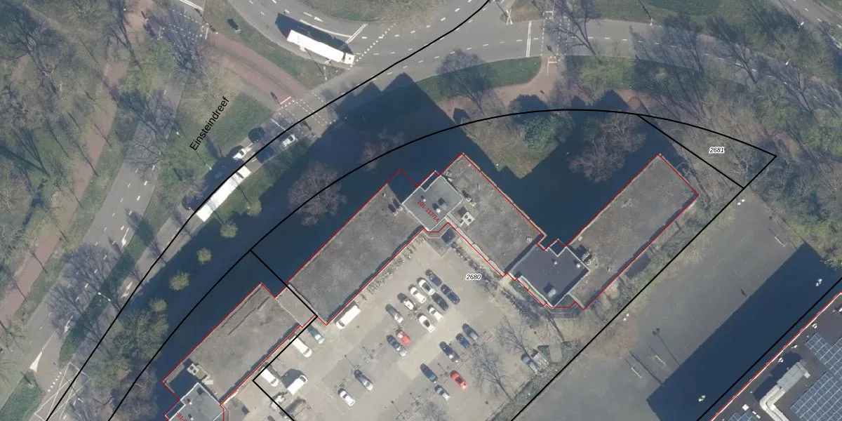 Het perceel waarop Einsteindreef 107-7 staat heeft een oppervlakte van 6245 m². Dit is een zeer groot perceel. De perceeloppervlakte wordt geregistreerd door het Kadaster. Gedetailleerde informatie over de maten van dit perceel kunt u vinden in het rapport Kadastrale kaart met maatvoering van Einsteindreef 107-7.