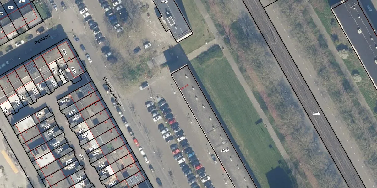 Het perceel waarop Eisenhowerlaan 196 staat heeft een oppervlakte van 915 m². Dit is een groot perceel. De perceeloppervlakte wordt geregistreerd door het Kadaster. Gedetailleerde informatie over de maten van dit perceel kunt u vinden in het rapport Kadastrale kaart met maatvoering van Eisenhowerlaan 196.