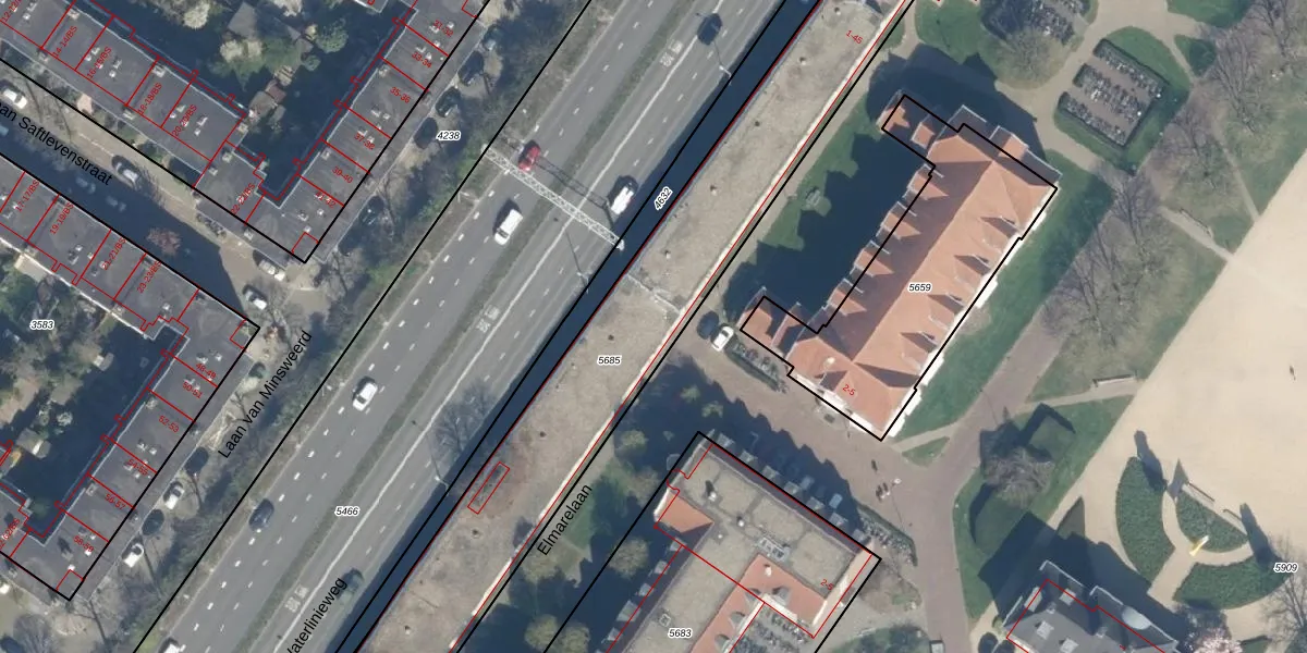 Het perceel waarop Elmarelaan 25 staat heeft een oppervlakte van 3455 m². Dit is een zeer groot perceel. De perceeloppervlakte wordt geregistreerd door het Kadaster. Gedetailleerde informatie over de maten van dit perceel kunt u vinden in het rapport Kadastrale kaart met maatvoering van Elmarelaan 25.