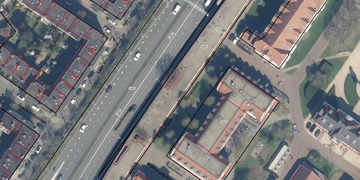 Het perceel waarop Elmarelaan 33 staat heeft een oppervlakte van 3455 m². Dit is een zeer groot perceel. De perceeloppervlakte wordt geregistreerd door het Kadaster. Gedetailleerde informatie over de maten van dit perceel kunt u vinden in het rapport Kadastrale kaart met maatvoering van Elmarelaan 33.