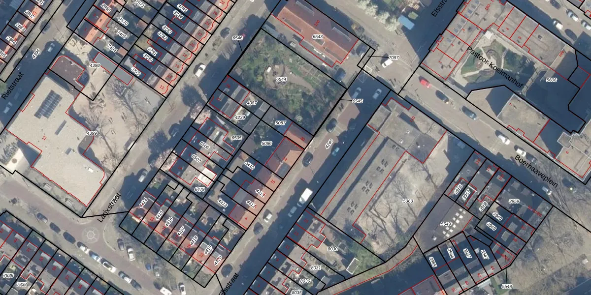 Gebruik de zoekbalk of klik op een perceel voor informatie over de adressen binnen dit perceel.