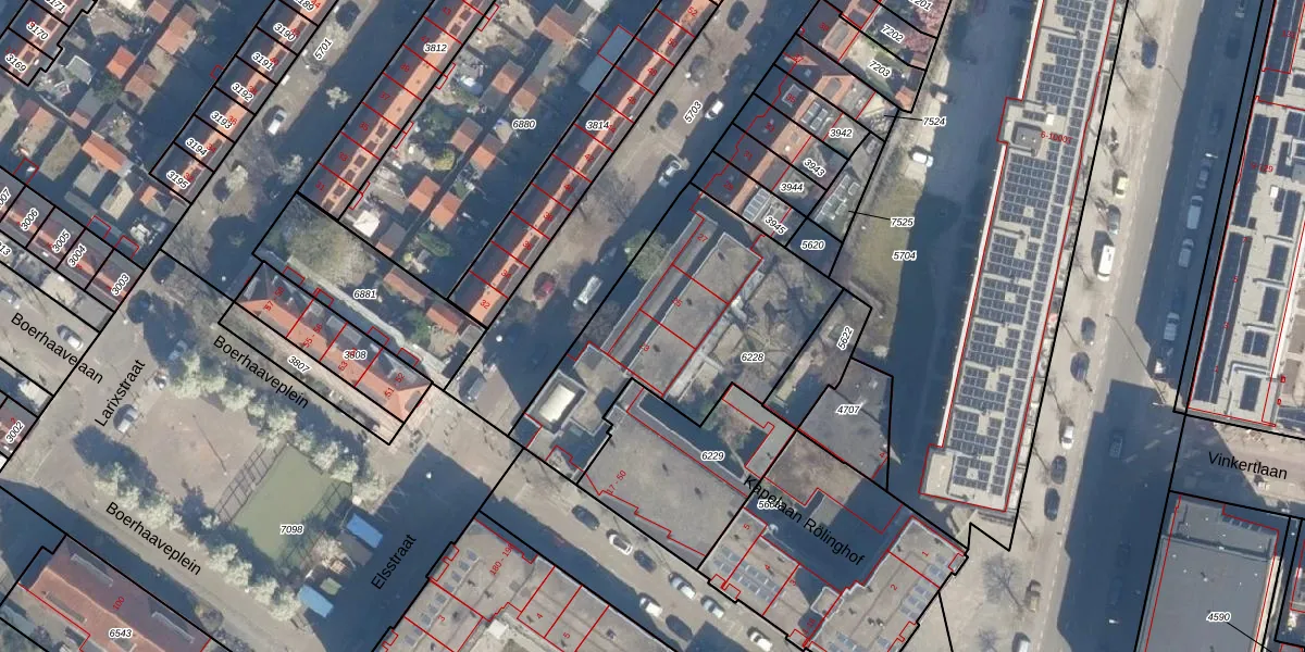 Het perceel waarop Elsstraat 23 staat heeft een oppervlakte van 1034 m². Dit is een zeer groot perceel. De perceeloppervlakte wordt geregistreerd door het Kadaster. Gedetailleerde informatie over de maten van dit perceel kunt u vinden in het rapport Kadastrale kaart met maatvoering van Elsstraat 23.