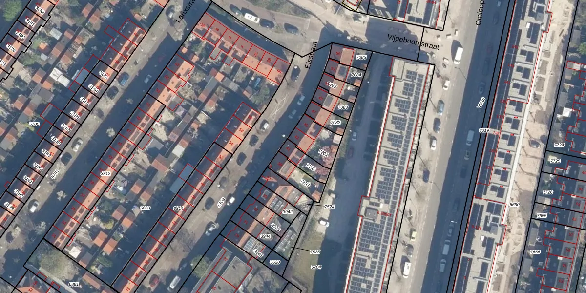Gebruik de zoekbalk of klik op een perceel voor informatie over de adressen binnen dit perceel.
