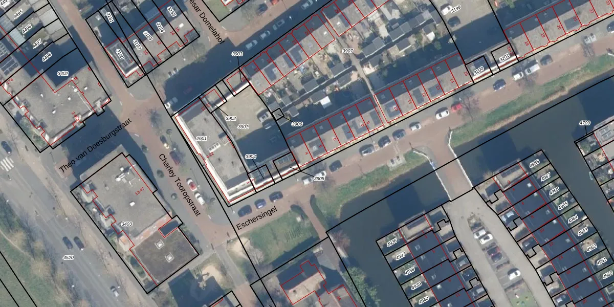 Eschersingel 4 is gelegen op kadastraal perceel UTT00V3907. Deze kadastrale aanduiding is uniek en wordt gebruikt door het Kadaster om eigendomsrechten en andere zakelijke rechten vast te leggen. Het perceel maakt onderdeel uit van de kadastrale gemeente Utrecht.