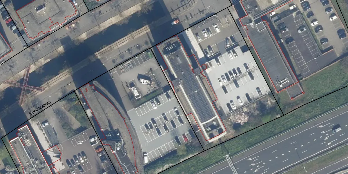 Het perceel waarop Euclideslaan 257 staat heeft een oppervlakte van 3395 m². Dit is een zeer groot perceel. De perceeloppervlakte wordt geregistreerd door het Kadaster. Gedetailleerde informatie over de maten van dit perceel kunt u vinden in het rapport Kadastrale kaart met maatvoering van Euclideslaan 257.