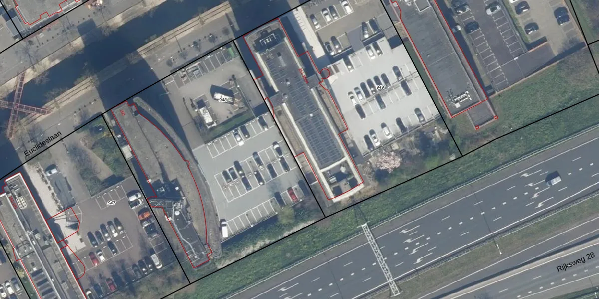 Het perceel waarop Euclideslaan 261-G staat heeft een oppervlakte van 3395 m². Dit is een zeer groot perceel. De perceeloppervlakte wordt geregistreerd door het Kadaster. Gedetailleerde informatie over de maten van dit perceel kunt u vinden in het rapport Kadastrale kaart met maatvoering van Euclideslaan 261-G.