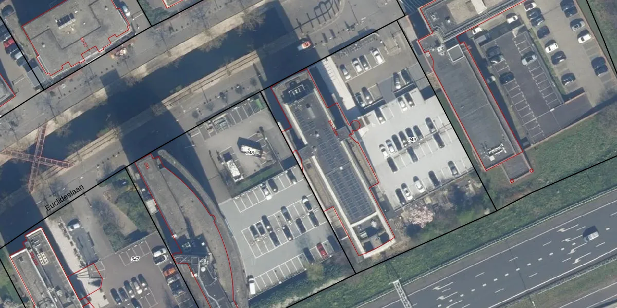 Het perceel waarop Euclideslaan 265-B staat heeft een oppervlakte van 3395 m². Dit is een zeer groot perceel. De perceeloppervlakte wordt geregistreerd door het Kadaster. Gedetailleerde informatie over de maten van dit perceel kunt u vinden in het rapport Kadastrale kaart met maatvoering van Euclideslaan 265-B.