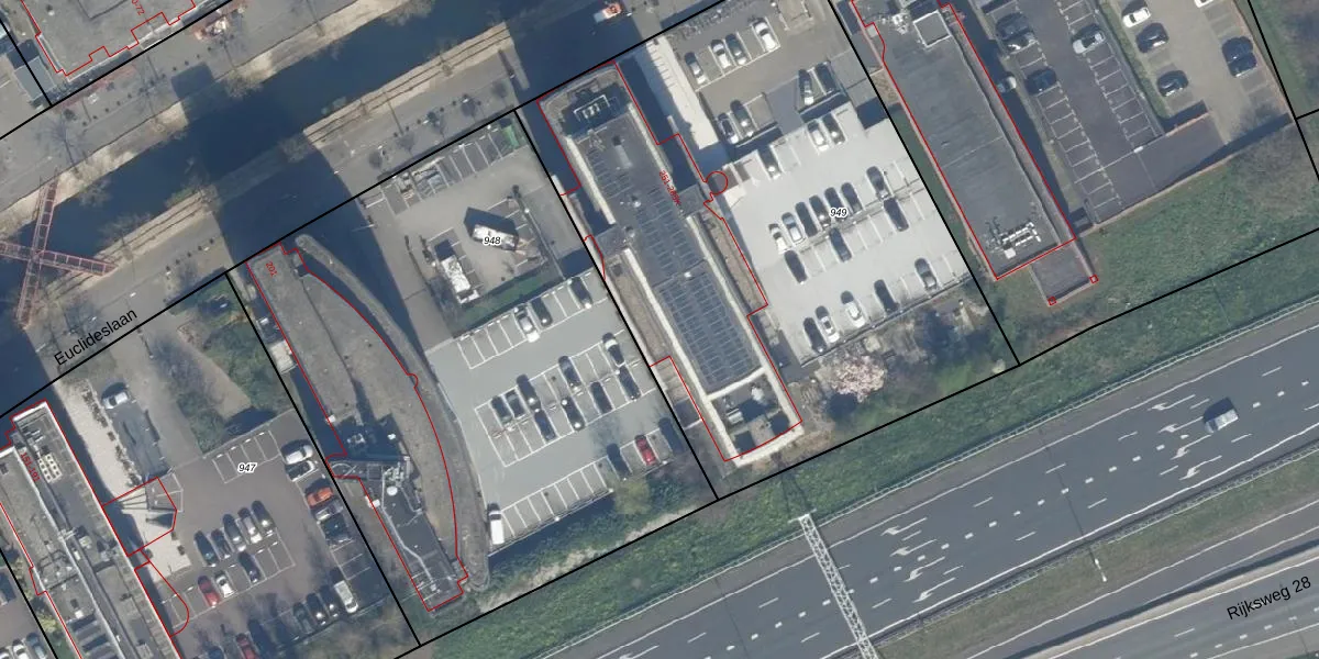 Het perceel waarop Euclideslaan 265-K staat heeft een oppervlakte van 3395 m². Dit is een zeer groot perceel. De perceeloppervlakte wordt geregistreerd door het Kadaster. Gedetailleerde informatie over de maten van dit perceel kunt u vinden in het rapport Kadastrale kaart met maatvoering van Euclideslaan 265-K.