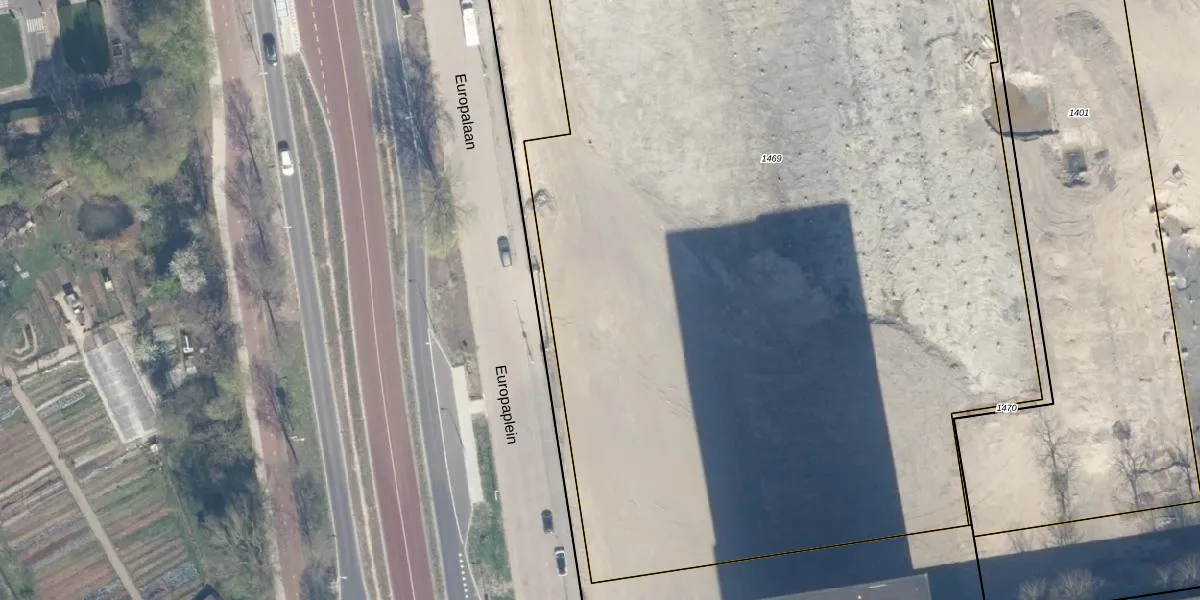 Het perceel waarop Europalaan 16-40 staat heeft een oppervlakte van 9612 m². Dit is een zeer groot perceel. De perceeloppervlakte wordt geregistreerd door het Kadaster. Gedetailleerde informatie over de maten van dit perceel kunt u vinden in het rapport Kadastrale kaart met maatvoering van Europalaan 16-40.