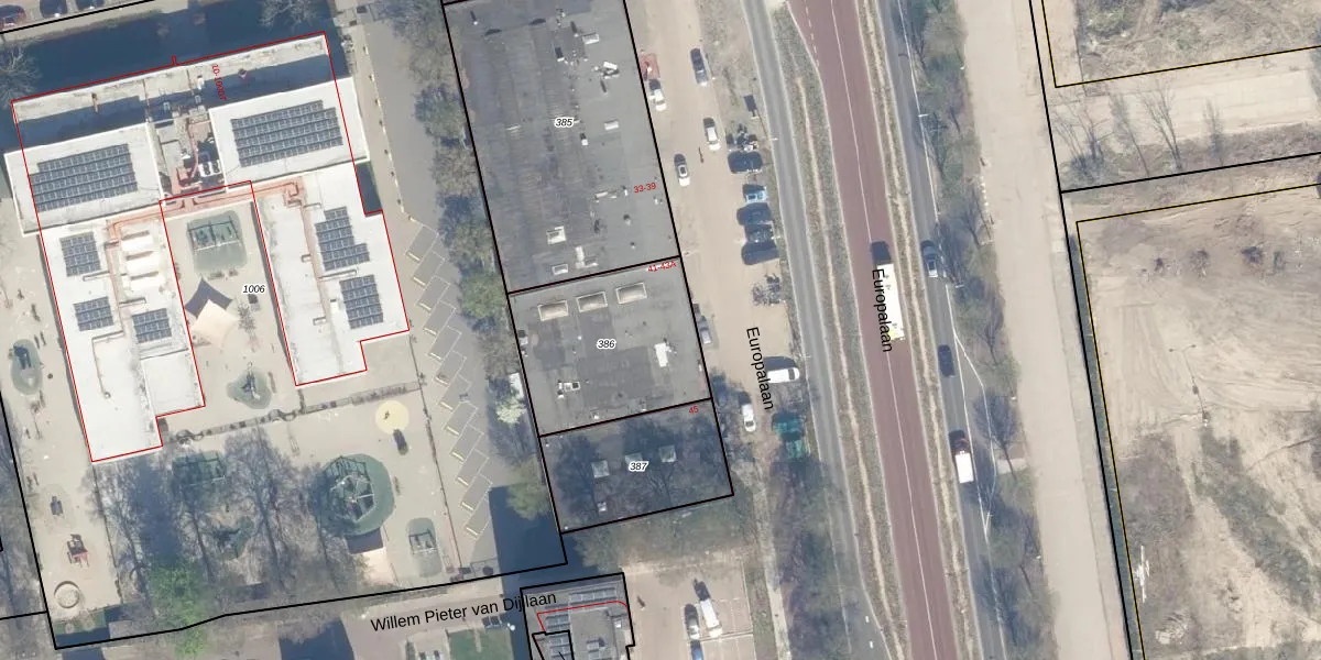 Het perceel waarop Europalaan 43-G staat heeft een oppervlakte van 593 m². Dit is een groot perceel. De perceeloppervlakte wordt geregistreerd door het Kadaster. Gedetailleerde informatie over de maten van dit perceel kunt u vinden in het rapport Kadastrale kaart met maatvoering van Europalaan 43-G.