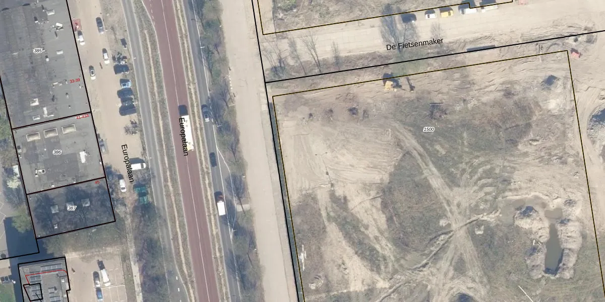 Het perceel waarop Europalaan 8-26 staat heeft een oppervlakte van 9430 m². Dit is een zeer groot perceel. De perceeloppervlakte wordt geregistreerd door het Kadaster. Gedetailleerde informatie over de maten van dit perceel kunt u vinden in het rapport Kadastrale kaart met maatvoering van Europalaan 8-26.