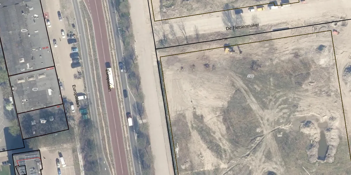 Het perceel waarop Europalaan 8-32 staat heeft een oppervlakte van 9430 m². Dit is een zeer groot perceel. De perceeloppervlakte wordt geregistreerd door het Kadaster. Gedetailleerde informatie over de maten van dit perceel kunt u vinden in het rapport Kadastrale kaart met maatvoering van Europalaan 8-32.