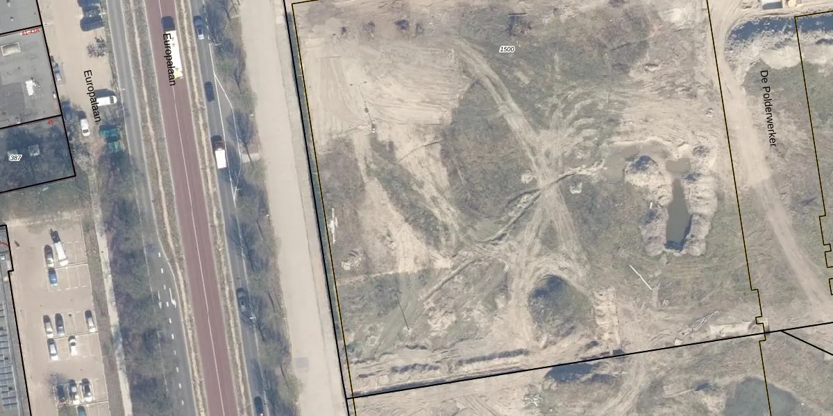 Het perceel waarop Europalaan 8-166 staat heeft een oppervlakte van 9430 m². Dit is een zeer groot perceel. De perceeloppervlakte wordt geregistreerd door het Kadaster. Gedetailleerde informatie over de maten van dit perceel kunt u vinden in het rapport Kadastrale kaart met maatvoering van Europalaan 8-166.
