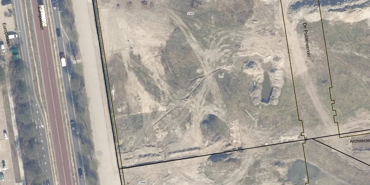 Het perceel waarop Europalaan 8-197 staat heeft een oppervlakte van 9430 m². Dit is een zeer groot perceel. De perceeloppervlakte wordt geregistreerd door het Kadaster. Gedetailleerde informatie over de maten van dit perceel kunt u vinden in het rapport Kadastrale kaart met maatvoering van Europalaan 8-197.