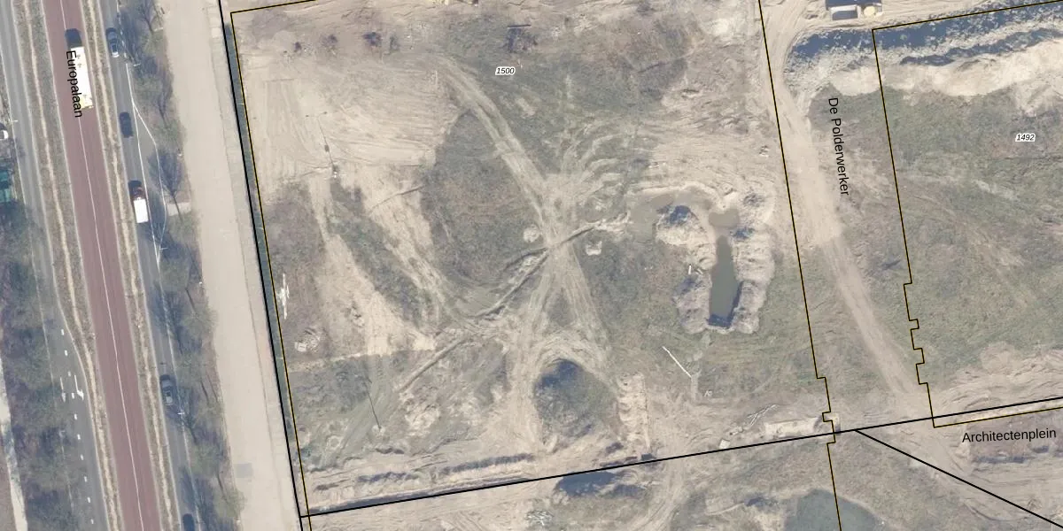 Het perceel waarop Europalaan 8-225 staat heeft een oppervlakte van 9430 m². Dit is een zeer groot perceel. De perceeloppervlakte wordt geregistreerd door het Kadaster. Gedetailleerde informatie over de maten van dit perceel kunt u vinden in het rapport Kadastrale kaart met maatvoering van Europalaan 8-225.