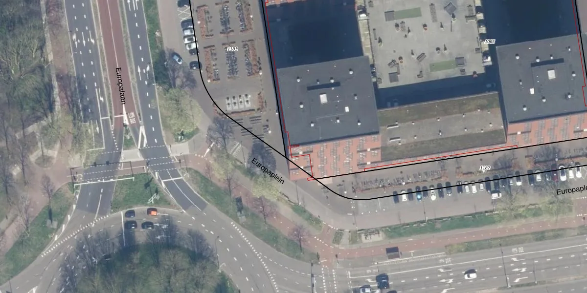 Het perceel waarop Europaplein 577 staat heeft een oppervlakte van 8365 m². Dit is een zeer groot perceel. De perceeloppervlakte wordt geregistreerd door het Kadaster. Gedetailleerde informatie over de maten van dit perceel kunt u vinden in het rapport Kadastrale kaart met maatvoering van Europaplein 577.