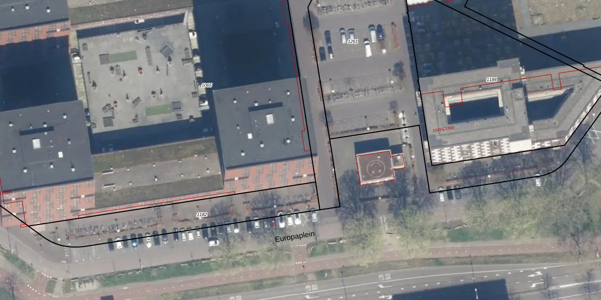 Het perceel waarop Europaplein 749 staat heeft een oppervlakte van 8365 m². Dit is een zeer groot perceel. De perceeloppervlakte wordt geregistreerd door het Kadaster. Gedetailleerde informatie over de maten van dit perceel kunt u vinden in het rapport Kadastrale kaart met maatvoering van Europaplein 749.