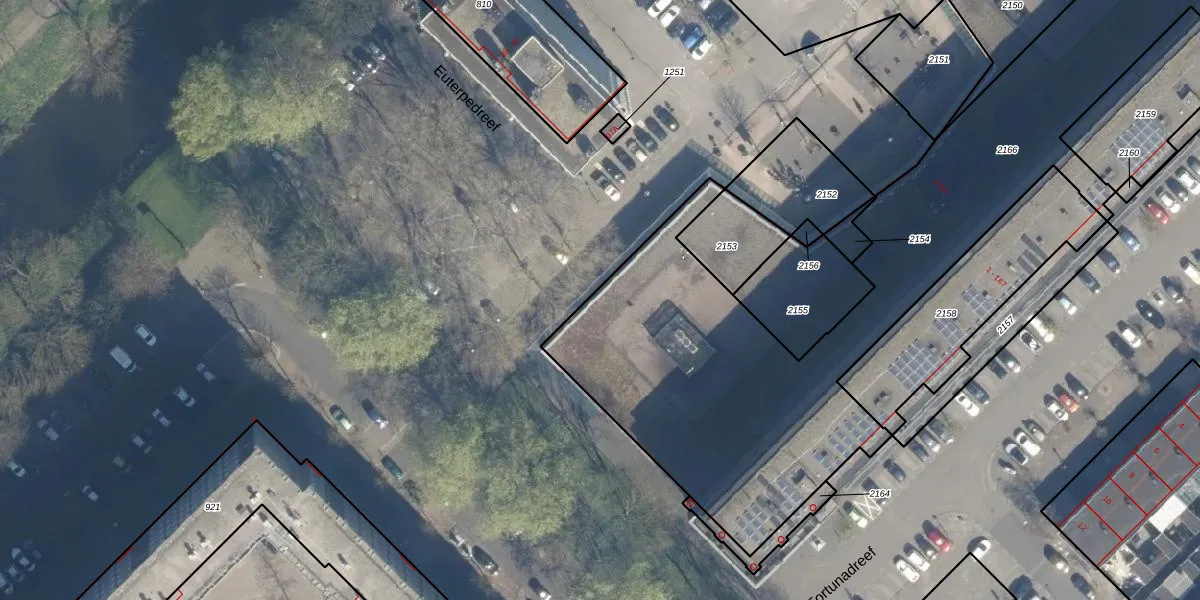 Het perceel waarop Euterpedreef 13 staat heeft een oppervlakte van 3276 m². Dit is een zeer groot perceel. De perceeloppervlakte wordt geregistreerd door het Kadaster. Gedetailleerde informatie over de maten van dit perceel kunt u vinden in het rapport Kadastrale kaart met maatvoering van Euterpedreef 13.