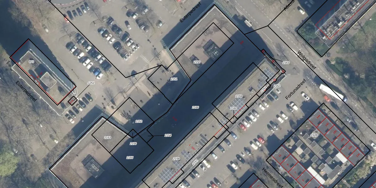 Het perceel waarop Euterpedreef 5 staat heeft een oppervlakte van 3276 m². Dit is een zeer groot perceel. De perceeloppervlakte wordt geregistreerd door het Kadaster. Gedetailleerde informatie over de maten van dit perceel kunt u vinden in het rapport Kadastrale kaart met maatvoering van Euterpedreef 5.