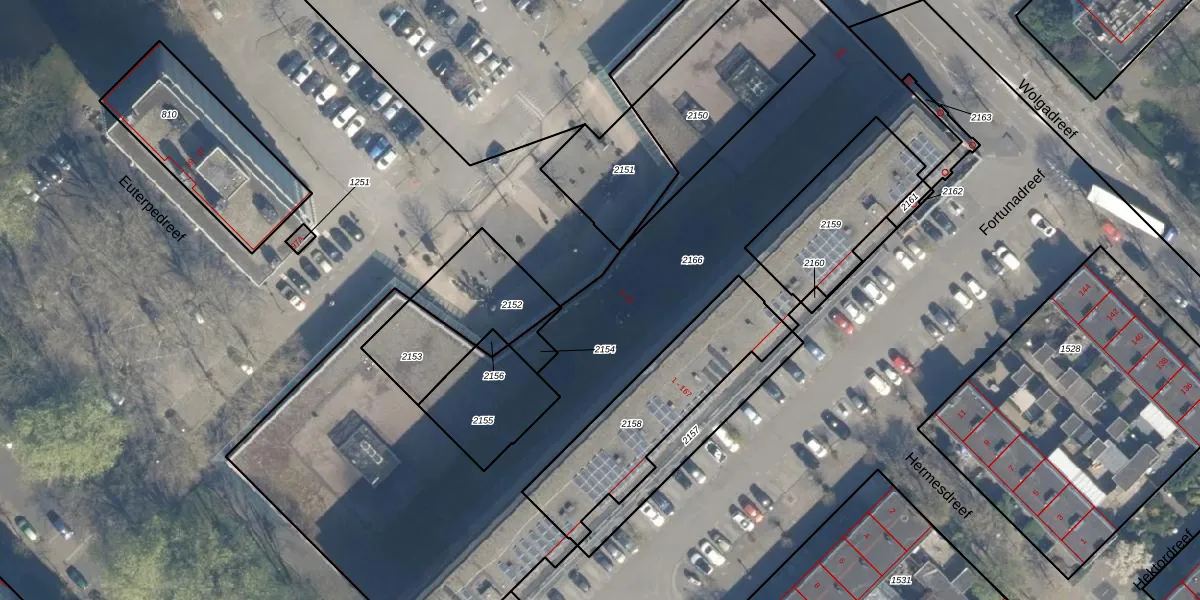 Het perceel waarop Euterpedreef 7 staat heeft een oppervlakte van 3276 m². Dit is een zeer groot perceel. De perceeloppervlakte wordt geregistreerd door het Kadaster. Gedetailleerde informatie over de maten van dit perceel kunt u vinden in het rapport Kadastrale kaart met maatvoering van Euterpedreef 7.