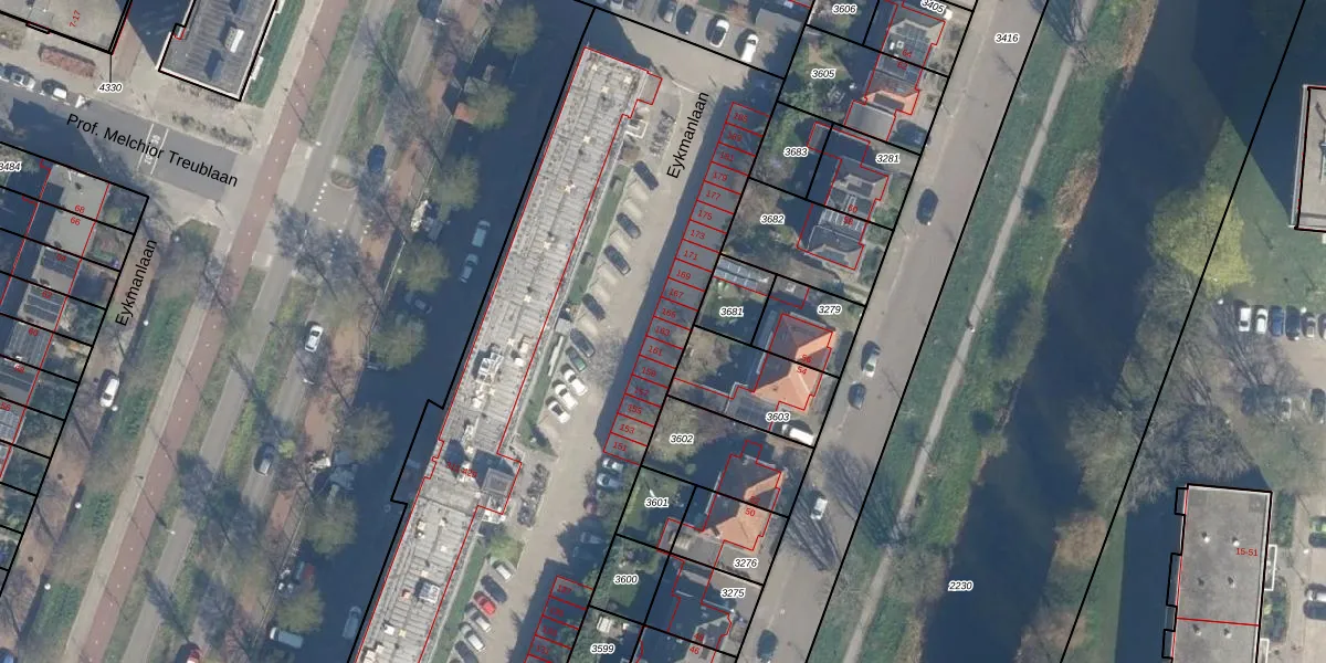 Het perceel waarop Eykmanlaan 163 staat heeft een oppervlakte van 9087 m². Dit is een zeer groot perceel. De perceeloppervlakte wordt geregistreerd door het Kadaster. Gedetailleerde informatie over de maten van dit perceel kunt u vinden in het rapport Kadastrale kaart met maatvoering van Eykmanlaan 163.