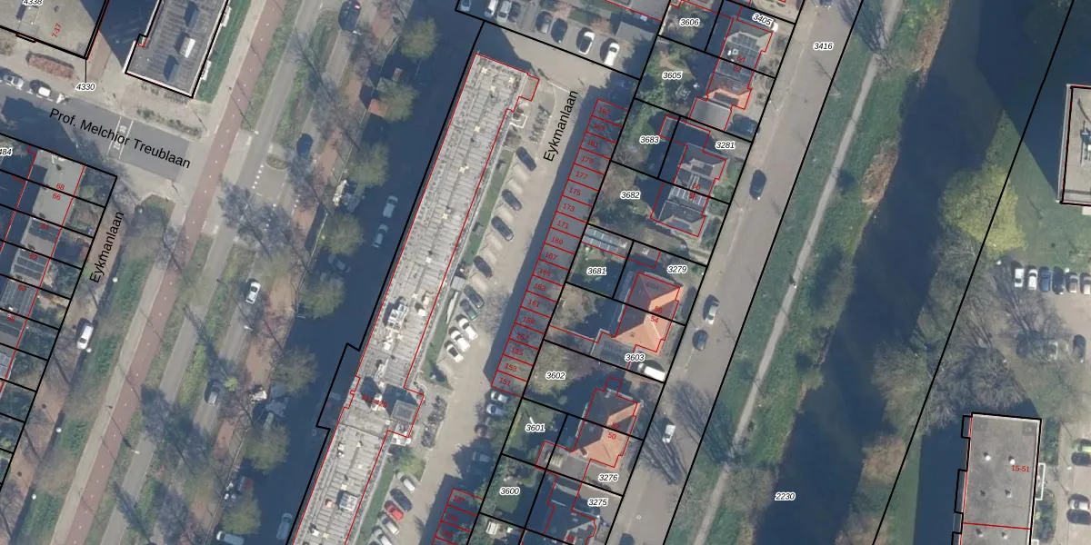Het perceel waarop Eykmanlaan 165 staat heeft een oppervlakte van 9087 m². Dit is een zeer groot perceel. De perceeloppervlakte wordt geregistreerd door het Kadaster. Gedetailleerde informatie over de maten van dit perceel kunt u vinden in het rapport Kadastrale kaart met maatvoering van Eykmanlaan 165.