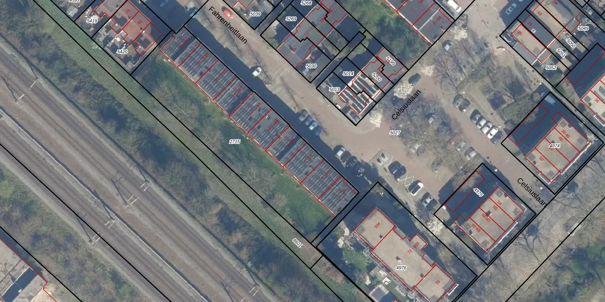 Het perceel waarop Fahrenheitlaan 6-2 staat heeft een oppervlakte van 1965 m². Dit is een zeer groot perceel. De perceeloppervlakte wordt geregistreerd door het Kadaster. Gedetailleerde informatie over de maten van dit perceel kunt u vinden in het rapport Kadastrale kaart met maatvoering van Fahrenheitlaan 6-2.