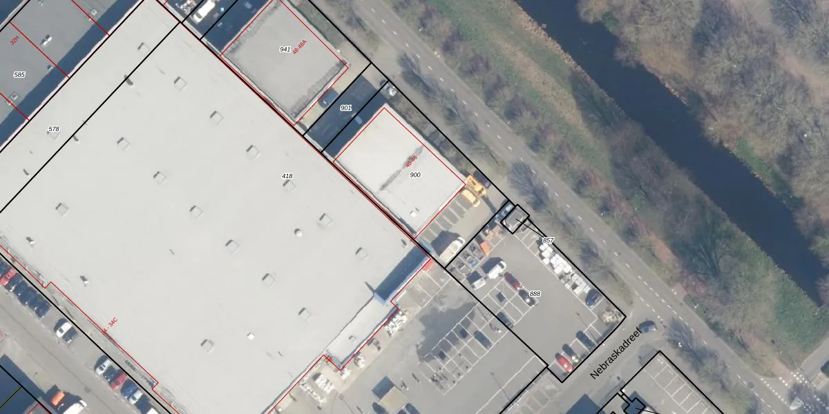 Het perceel waarop Floridadreef 40 staat heeft een oppervlakte van 959 m². Dit is een groot perceel. De perceeloppervlakte wordt geregistreerd door het Kadaster. Gedetailleerde informatie over de maten van dit perceel kunt u vinden in het rapport Kadastrale kaart met maatvoering van Floridadreef 40.