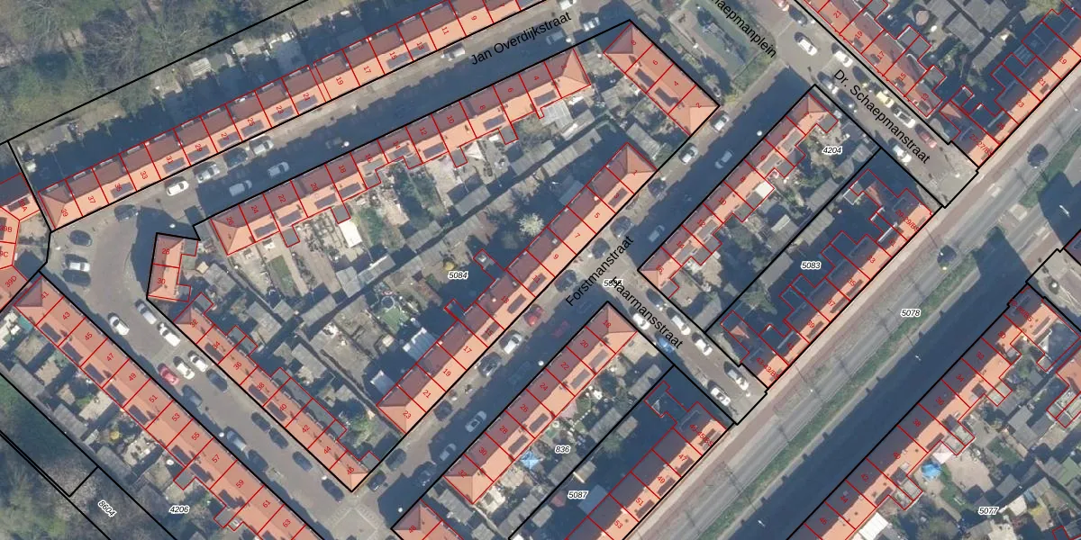 Het perceel waarop Forstmanstraat 11 staat heeft een oppervlakte van 4102 m². Dit is een zeer groot perceel. De perceeloppervlakte wordt geregistreerd door het Kadaster. Gedetailleerde informatie over de maten van dit perceel kunt u vinden in het rapport Kadastrale kaart met maatvoering van Forstmanstraat 11.