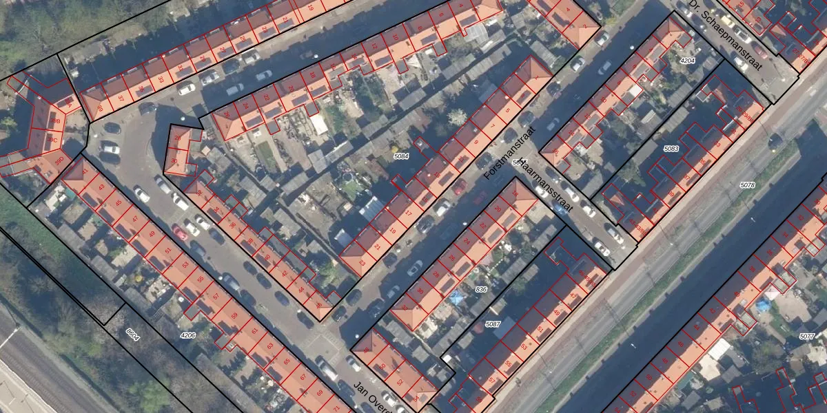 Het perceel waarop Forstmanstraat 17 staat heeft een oppervlakte van 4102 m². Dit is een zeer groot perceel. De perceeloppervlakte wordt geregistreerd door het Kadaster. Gedetailleerde informatie over de maten van dit perceel kunt u vinden in het rapport Kadastrale kaart met maatvoering van Forstmanstraat 17.