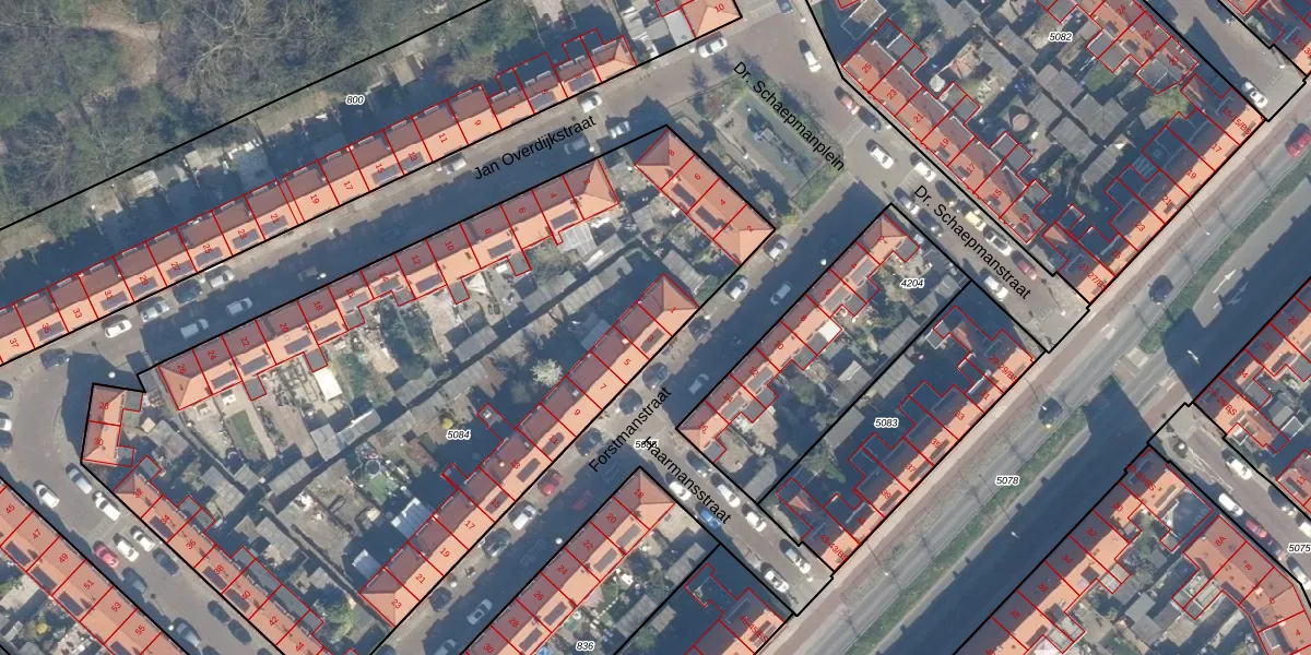 Het perceel waarop Forstmanstraat 3 staat heeft een oppervlakte van 4102 m². Dit is een zeer groot perceel. De perceeloppervlakte wordt geregistreerd door het Kadaster. Gedetailleerde informatie over de maten van dit perceel kunt u vinden in het rapport Kadastrale kaart met maatvoering van Forstmanstraat 3.