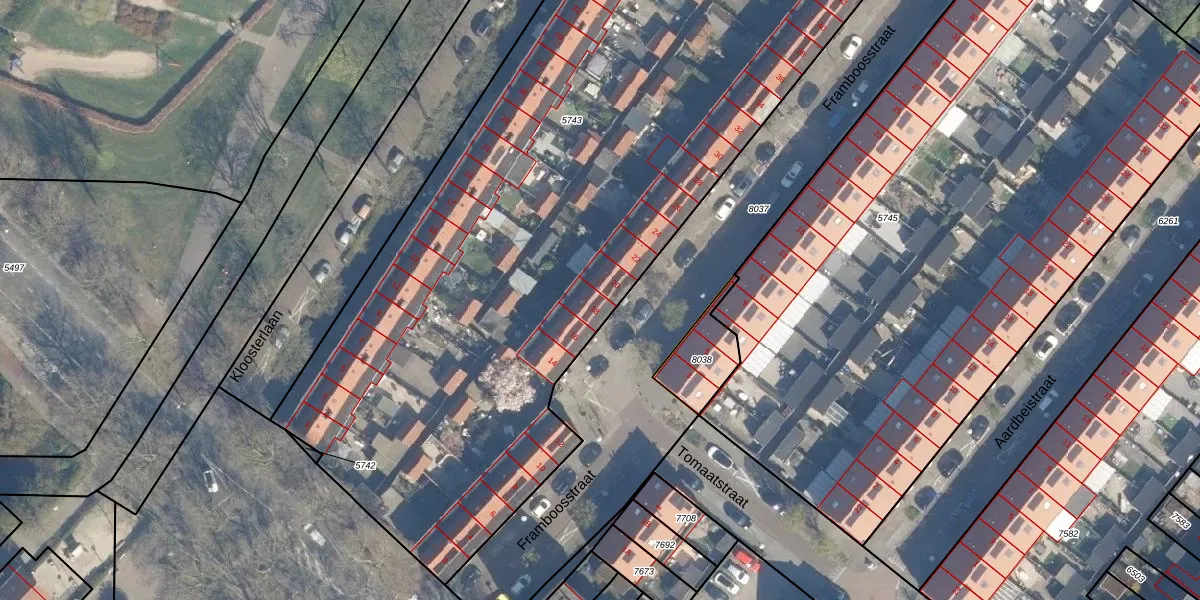 Het perceel waarop Framboosstraat 18 staat heeft een oppervlakte van 6089 m². Dit is een zeer groot perceel. De perceeloppervlakte wordt geregistreerd door het Kadaster. Gedetailleerde informatie over de maten van dit perceel kunt u vinden in het rapport Kadastrale kaart met maatvoering van Framboosstraat 18.