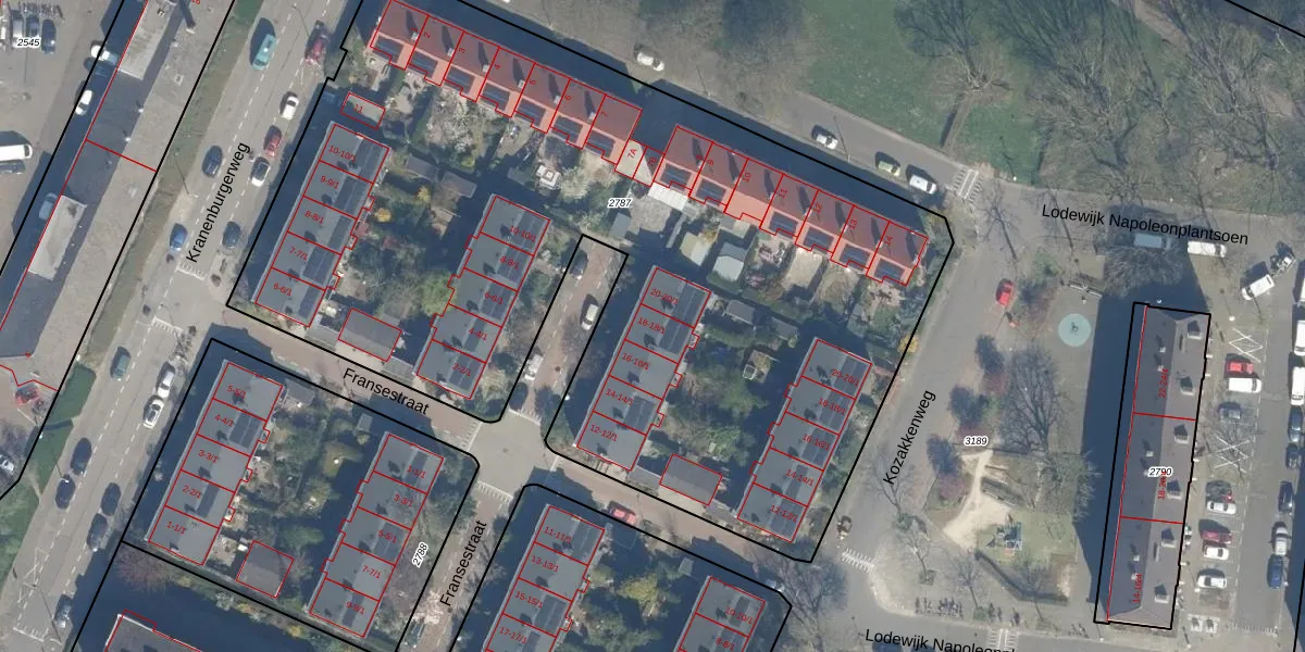 Het perceel waarop Fransestraat 18-1 staat heeft een oppervlakte van 5265 m². Dit is een zeer groot perceel. De perceeloppervlakte wordt geregistreerd door het Kadaster. Gedetailleerde informatie over de maten van dit perceel kunt u vinden in het rapport Kadastrale kaart met maatvoering van Fransestraat 18-1.