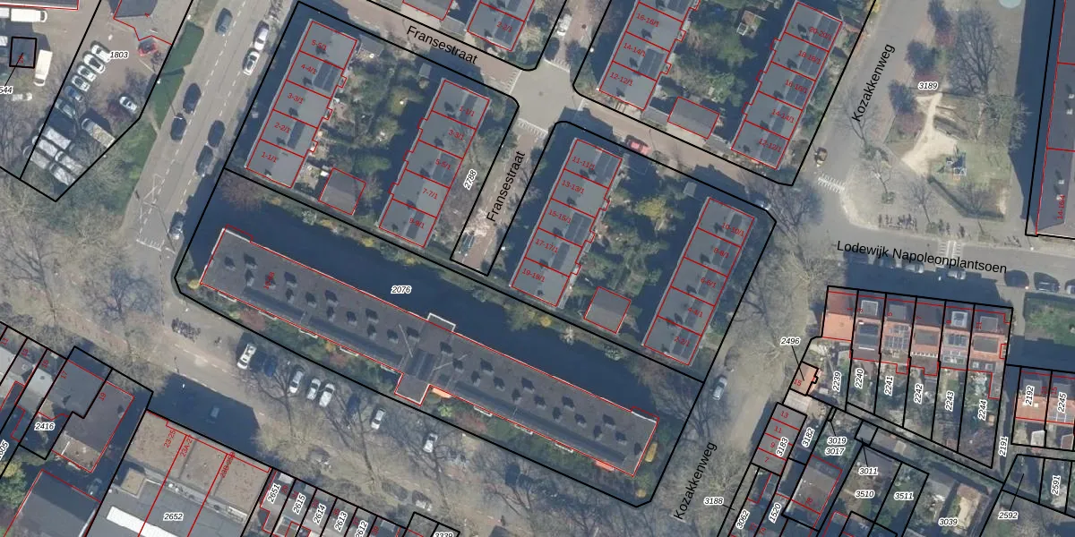 Het perceel waarop Fransestraat 19 staat heeft een oppervlakte van 3020 m². Dit is een zeer groot perceel. De perceeloppervlakte wordt geregistreerd door het Kadaster. Gedetailleerde informatie over de maten van dit perceel kunt u vinden in het rapport Kadastrale kaart met maatvoering van Fransestraat 19.