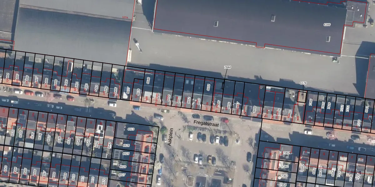Het perceel waarop Fregatstraat 101-E staat heeft een oppervlakte van 97 m². Dit is een klein perceel. De perceeloppervlakte wordt geregistreerd door het Kadaster. Gedetailleerde informatie over de maten van dit perceel kunt u vinden in het rapport Kadastrale kaart met maatvoering van Fregatstraat 101-E.