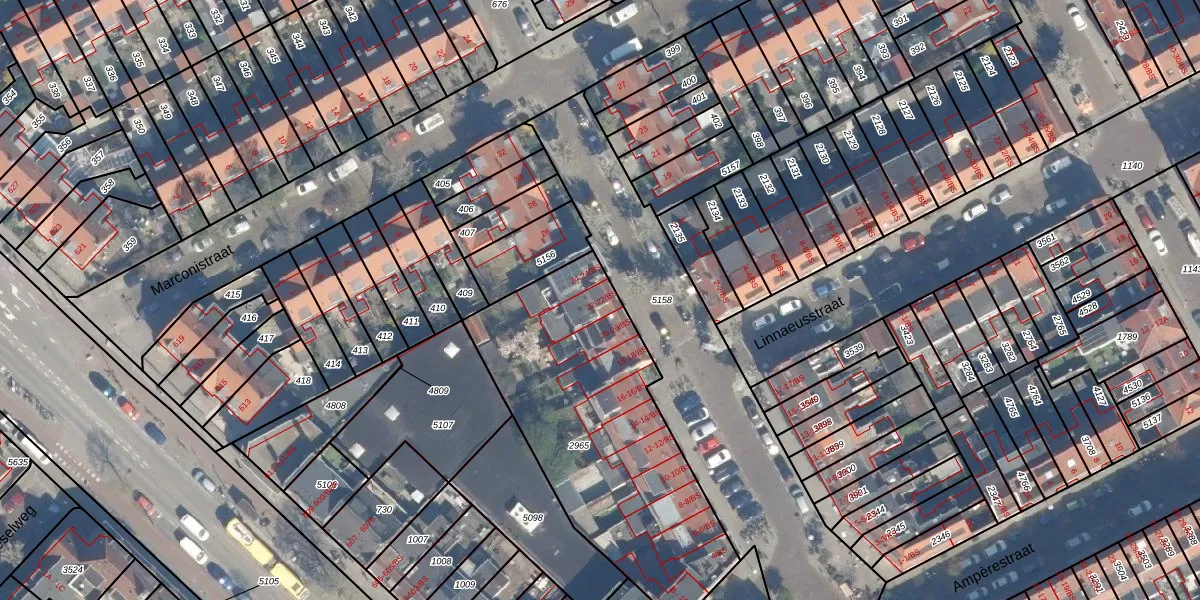 Het perceel waarop Galvanistraat 22-BS staat heeft een oppervlakte van 1305 m². Dit is een zeer groot perceel. De perceeloppervlakte wordt geregistreerd door het Kadaster. Gedetailleerde informatie over de maten van dit perceel kunt u vinden in het rapport Kadastrale kaart met maatvoering van Galvanistraat 22-BS.