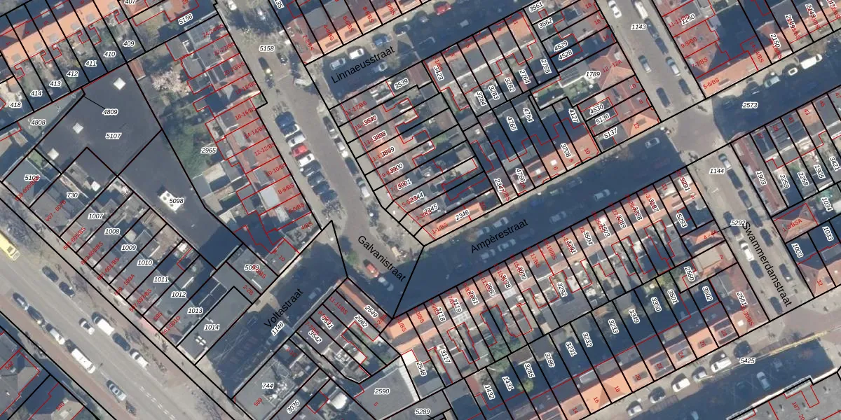 Het perceel waarop Galvanistraat 3 staat heeft een oppervlakte van 100 m². Dit is een middelgroot perceel. De perceeloppervlakte wordt geregistreerd door het Kadaster. Gedetailleerde informatie over de maten van dit perceel kunt u vinden in het rapport Kadastrale kaart met maatvoering van Galvanistraat 3.