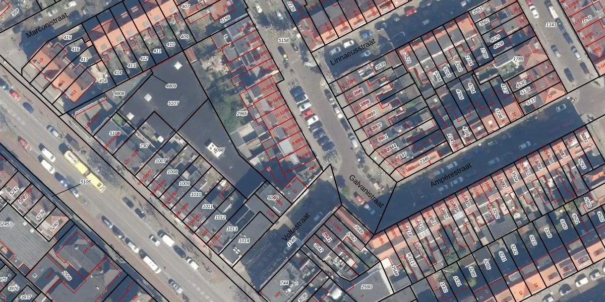 Het perceel waarop Galvanistraat 6 staat heeft een oppervlakte van 1305 m². Dit is een zeer groot perceel. De perceeloppervlakte wordt geregistreerd door het Kadaster. Gedetailleerde informatie over de maten van dit perceel kunt u vinden in het rapport Kadastrale kaart met maatvoering van Galvanistraat 6.