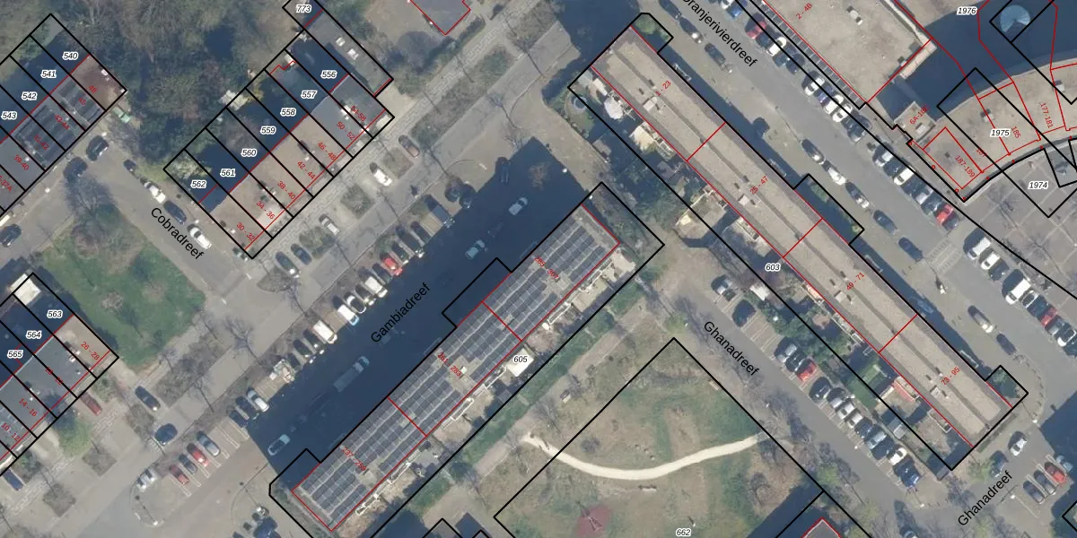 Het perceel waarop Gambiadreef 285 staat heeft een oppervlakte van 1484 m². Dit is een zeer groot perceel. De perceeloppervlakte wordt geregistreerd door het Kadaster. Gedetailleerde informatie over de maten van dit perceel kunt u vinden in het rapport Kadastrale kaart met maatvoering van Gambiadreef 285.
