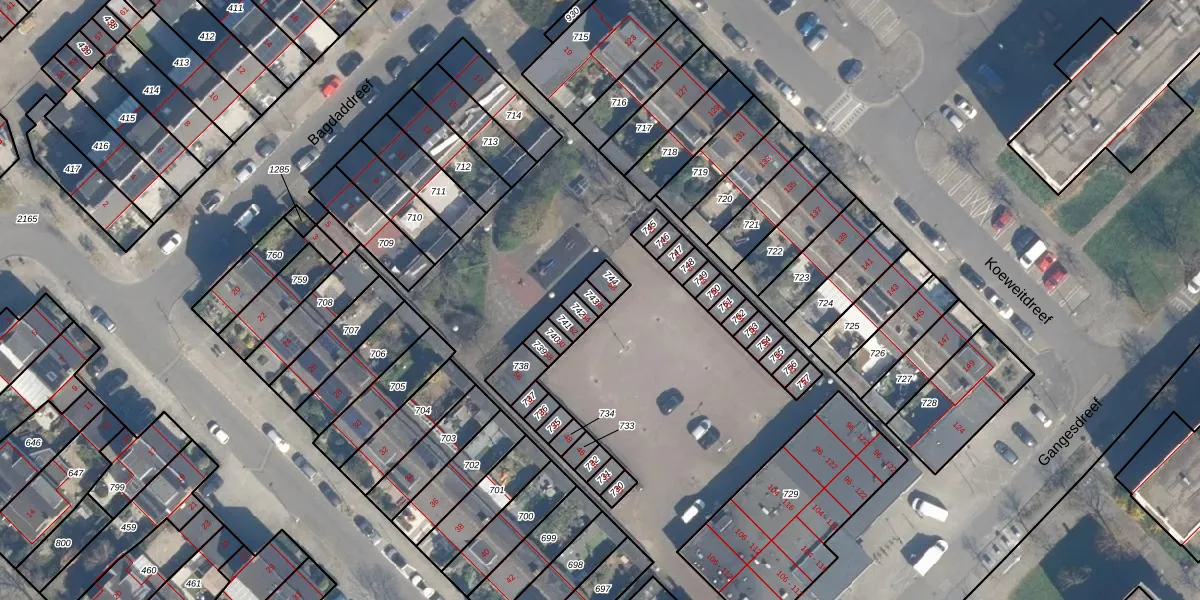 Het perceel waarop Gangesdreef 66 staat heeft een oppervlakte van 18 m². Dit is een klein perceel. De perceeloppervlakte wordt geregistreerd door het Kadaster. Gedetailleerde informatie over de maten van dit perceel kunt u vinden in het rapport Kadastrale kaart met maatvoering van Gangesdreef 66.