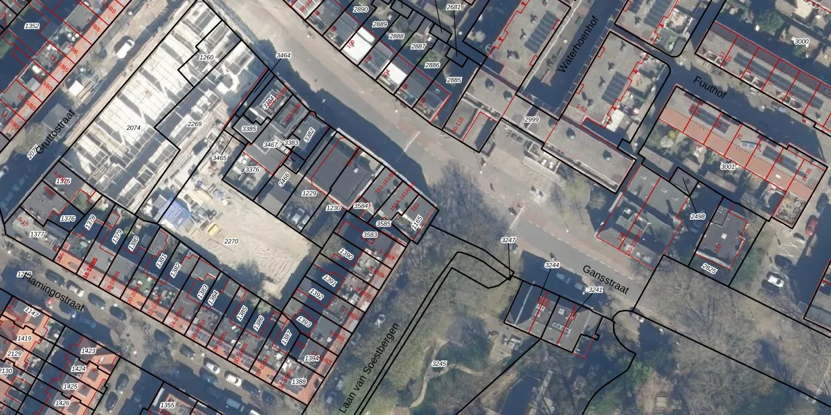 Gebruik de zoekbalk of klik op een perceel voor informatie over de adressen binnen dit perceel.