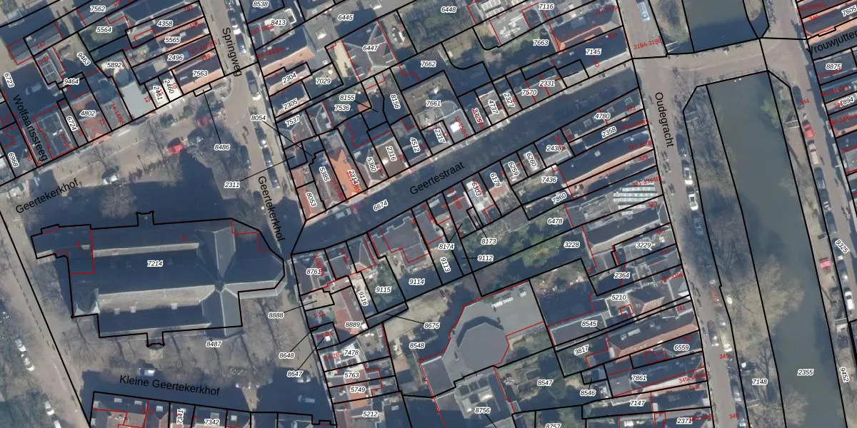 Geertestraat 16 is gelegen op kadastraal perceel UTT00C9113. Deze kadastrale aanduiding is uniek en wordt gebruikt door het Kadaster om eigendomsrechten en andere zakelijke rechten vast te leggen. Het perceel maakt onderdeel uit van de kadastrale gemeente Utrecht.