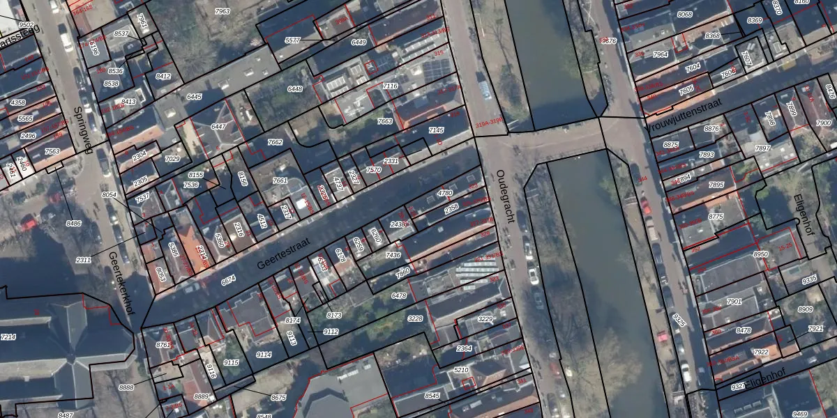 Het perceel waarop Geertestraat 2 staat heeft een oppervlakte van 80 m². Dit is een klein perceel. De perceeloppervlakte wordt geregistreerd door het Kadaster. Gedetailleerde informatie over de maten van dit perceel kunt u vinden in het rapport Kadastrale kaart met maatvoering van Geertestraat 2.