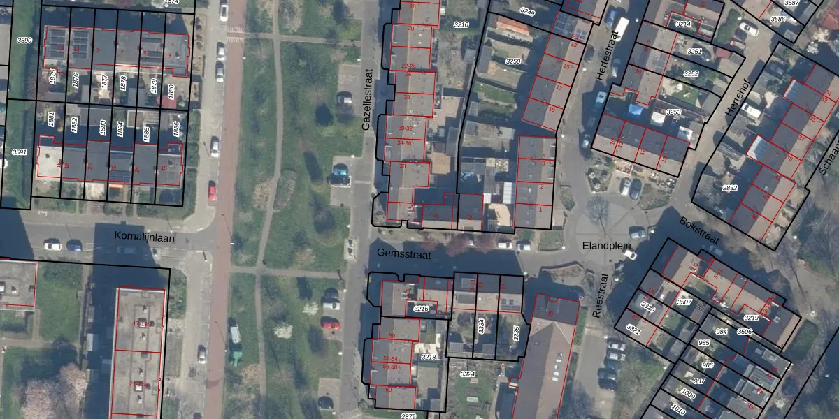 Het perceel waarop Gemsstraat 4 staat heeft een oppervlakte van 1300 m². Dit is een zeer groot perceel. De perceeloppervlakte wordt geregistreerd door het Kadaster. Gedetailleerde informatie over de maten van dit perceel kunt u vinden in het rapport Kadastrale kaart met maatvoering van Gemsstraat 4.