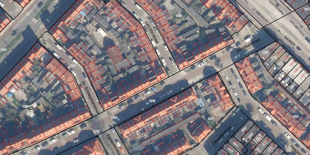 Geraniumstraat 19 is gelegen op kadastraal perceel ZLN02C5074. Deze kadastrale aanduiding is uniek en wordt gebruikt door het Kadaster om eigendomsrechten en andere zakelijke rechten vast te leggen. Het perceel maakt onderdeel uit van de kadastrale gemeente Zuilen.