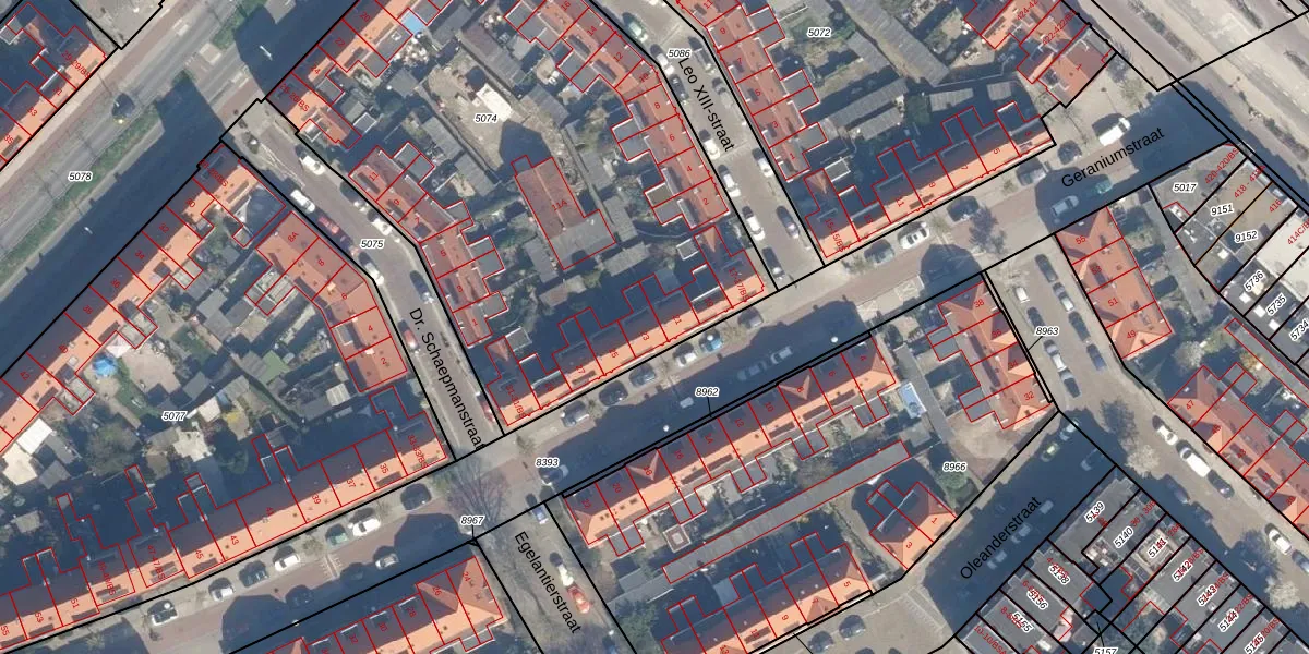 Geraniumstraat 23 is gelegen op kadastraal perceel ZLN02C5074. Deze kadastrale aanduiding is uniek en wordt gebruikt door het Kadaster om eigendomsrechten en andere zakelijke rechten vast te leggen. Het perceel maakt onderdeel uit van de kadastrale gemeente Zuilen.