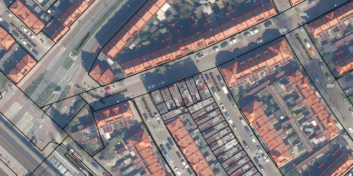 Geraniumstraat 44 is gelegen op kadastraal perceel CTR00B5134. Deze kadastrale aanduiding is uniek en wordt gebruikt door het Kadaster om eigendomsrechten en andere zakelijke rechten vast te leggen. Het perceel maakt onderdeel uit van de kadastrale gemeente Catharijne.